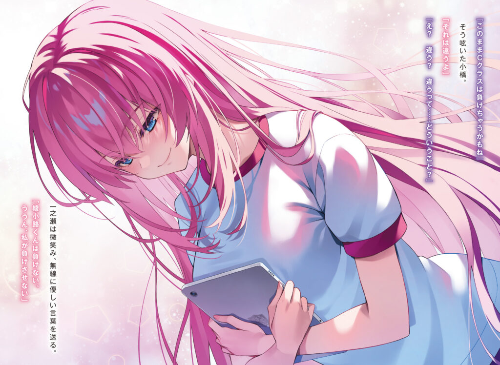 Ichinose abraçou o tablet contra o peito, seus pensamentos naturalmente se voltando para Ayanokōji.