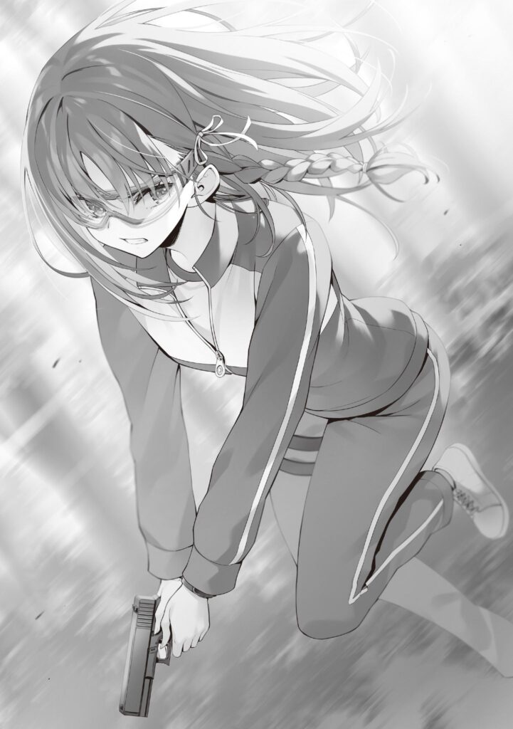 Se houvesse vários inimigos, ela achou que deveria ter avistado pelo menos um, mas não viu ninguém além de seus colegas de classe. Levantando poeira e pisando em folhas, Horikita avistou uma silhueta humana à frente e ergueu sua arma.