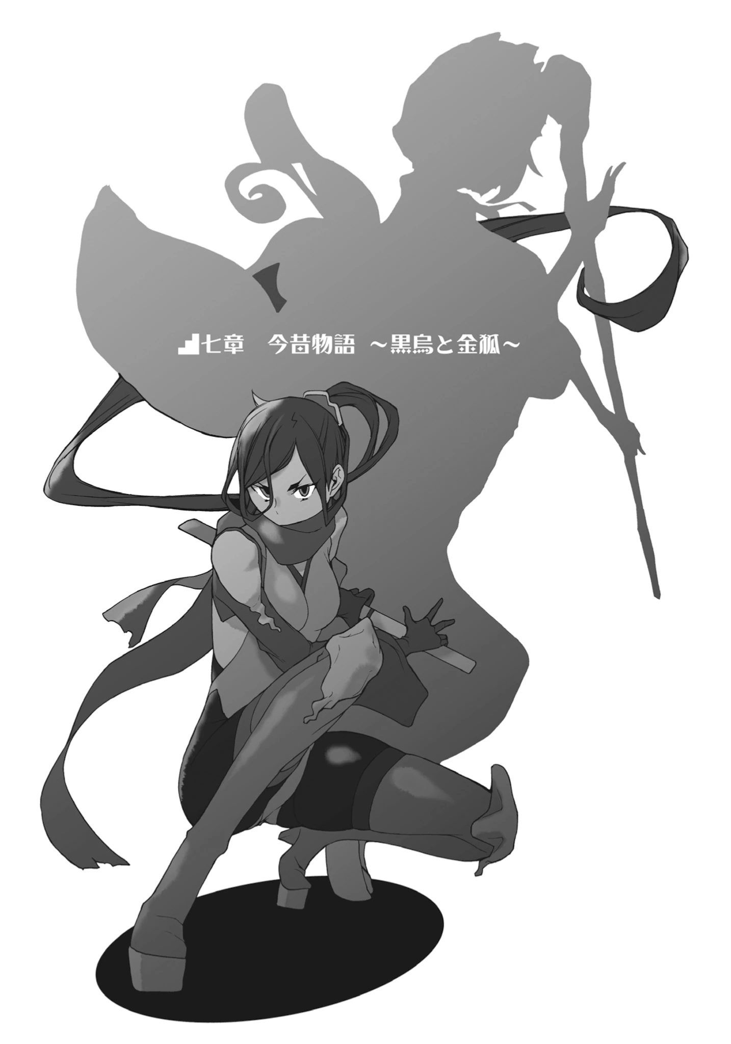 O Renard que, elevando seu longo cajado, Haruhime, correu em direção a um monstro.