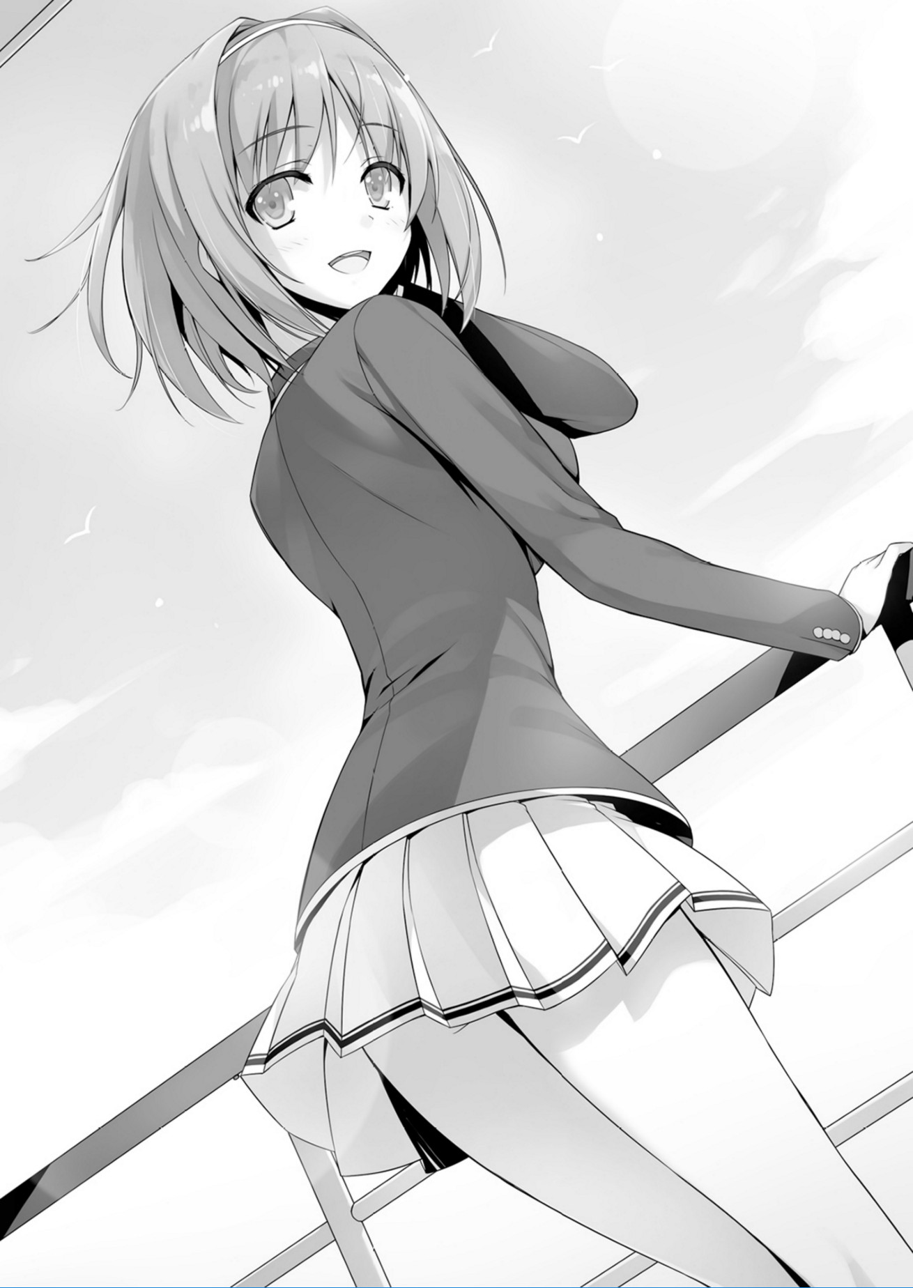 De repente, Kushida se virou para mim. Eu poderia dizer que algo estava em sua mente. Com o vasto oceano e o infinito céu azul atrás dela, Kushida parecia ainda mais radiante do que o normal.